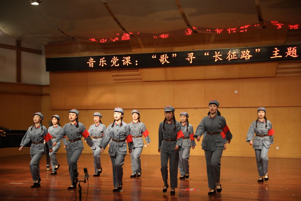 音乐党课沿着中央红军路线,用歌声走红军长征路,将“讲”与“演”充分融合,在聆听党史中了解革命百年征程的艰苦卓绝,在欣赏音乐时感悟革命先烈崇高的理想信念,在训练实践里践行历史与时代赋予的使命与担当。通过视、听、思、悟的融合,达到更好的艺术思政教育的效果。