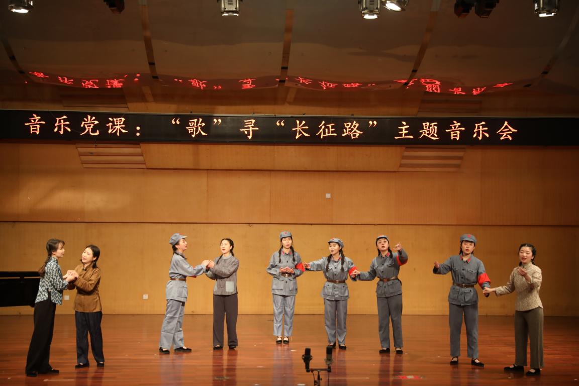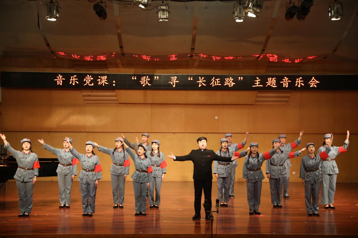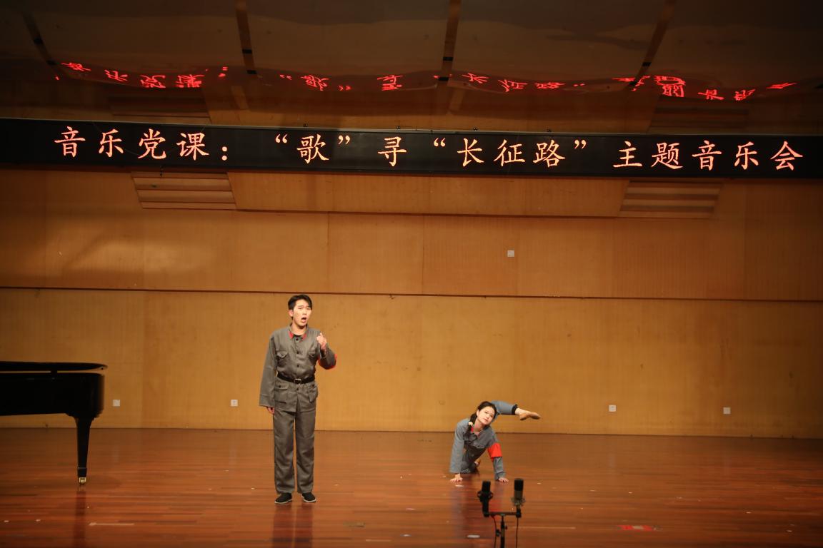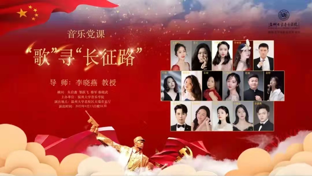 实践周活动中安排的一场音乐党课——“歌”寻“长征路”主题音乐会在温州大学北校区天瑞音乐厅演出,吸引了不少师生。本次音乐党课由声乐系主任李晓燕教授策划、编排、指导,陈悦老师、陶晨薇、黄胜等同学担任钢琴伴奏。