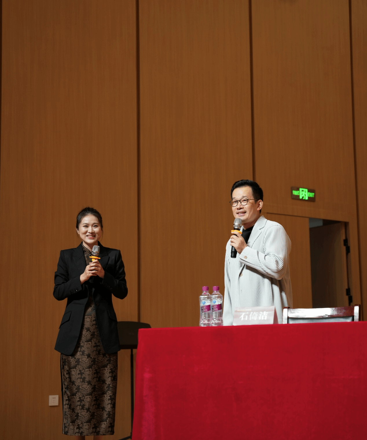 石倚洁教授从发声方法、气息训练、咬字归韵、乐句呼吸的设计以及歌曲情感处理等方面进行讲解,语言幽默风趣、通俗易懂。同时,石老师的示范演唱声动梁尘、扣人心弦,似乎将歌词中的每一个字都赋予了生命,将旋律中的每一个细节都呈现得恰到好处。技巧的运用与情感的表达完美融合,使得石老师的范唱充满了感染力和共鸣力,在场听众无不沉醉其中。