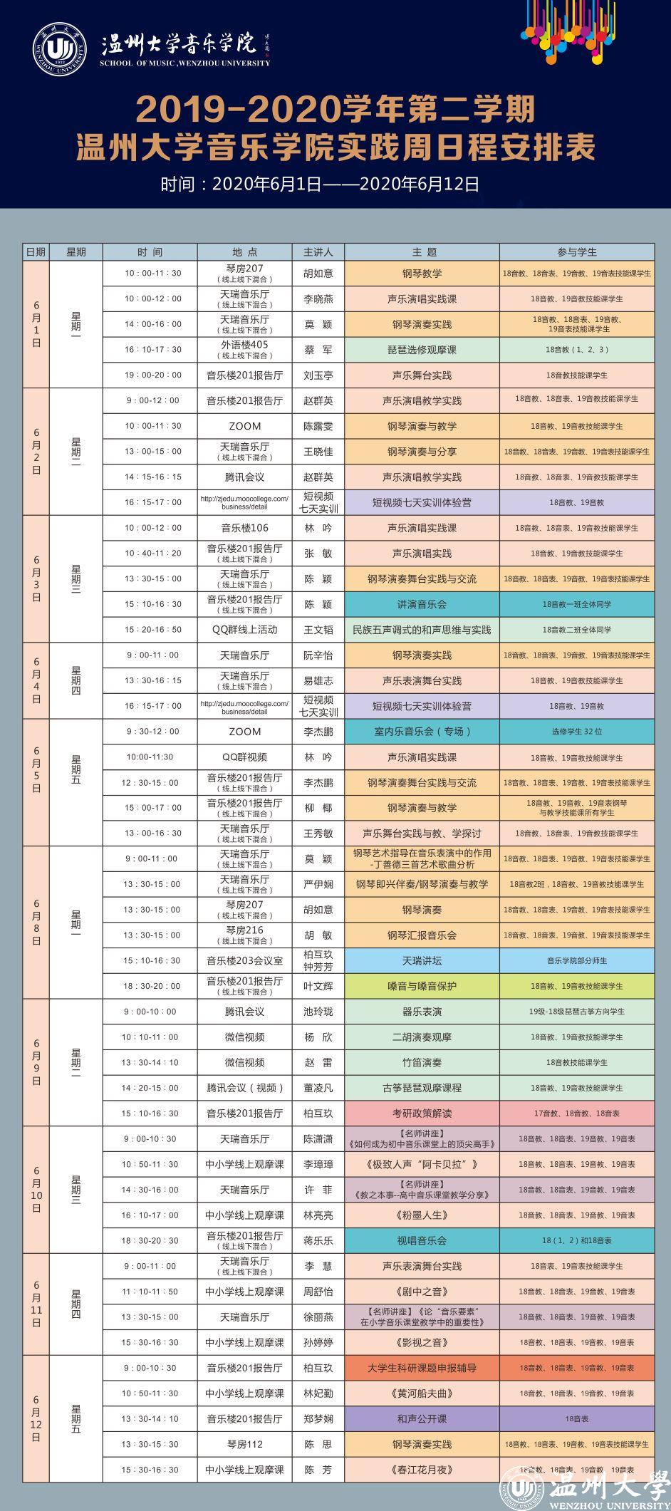 2019-2020学年第二学期温州大学黄网 实践周日程安排表